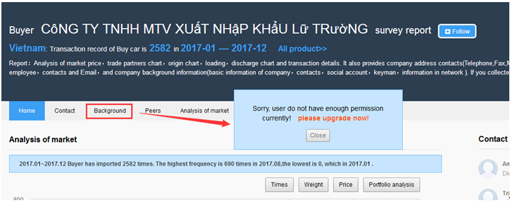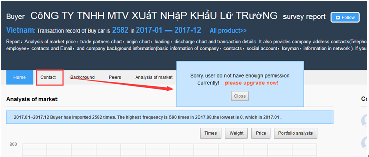 Two: at thistime we can see the name and basic situation of the global buyer you searchfor, and directly click the name of the company to enter the buyer's inspectionreport page, that is, the detailed analysis page of the company.