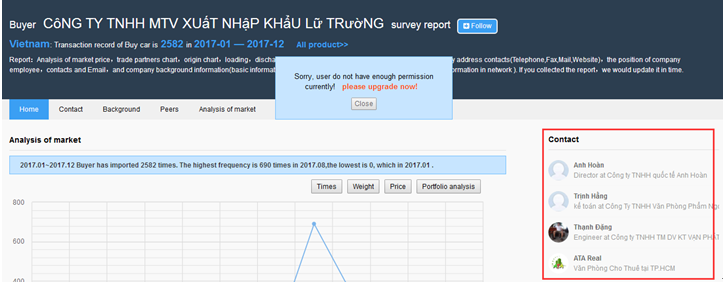 After paying attention to the company'sreport, not only you cansee the annual statistical reports, but we also updatethe company's latesttransactions to the report in a timely manner. Through thebuyer's inspectionreport, we can analysis it deeply from the data , and seewhether match with ourbusiness, and then contact it directly!