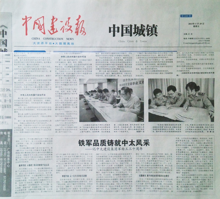 2015年,中太建設(shè)集團(tuán)迎來(lái)了軍轉(zhuǎn)工30周年。5月30日,奮斗在全國(guó)各地建設(shè)戰(zhàn)線上的軍轉(zhuǎn)工干部、職工代表歡聚一堂,共憶往昔,展望未來(lái)。