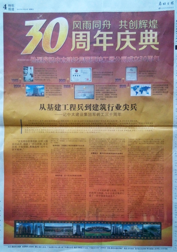 “三十年的積累與實踐,三十年的改革與創(chuàng)新,為中太建設(shè)集團打造了一張中國建筑業(yè)名片!