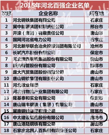 近日,由河北省工業(yè)經(jīng)濟(jì)聯(lián)合會(huì)主辦,省企業(yè)家協(xié)會(huì)、省企業(yè)聯(lián)合會(huì)和省統(tǒng)計(jì)學(xué)會(huì)協(xié)辦的2015年河北百?gòu)?qiáng)企業(yè)排序活動(dòng)圓滿落幕,經(jīng)層層評(píng)選審核、專家評(píng)審和社會(huì)公示等程序,最終揭曉結(jié)果。中太建設(shè)集團(tuán)再次榮膺“河北百?gòu)?qiáng)企業(yè)”(第16名),并在“河北省重點(diǎn)行業(yè)排頭兵企業(yè)”排名中榮獲建筑業(yè)第1名。