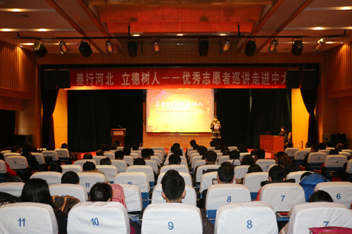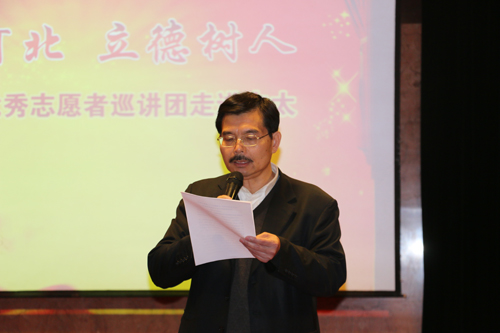 11月18日上午,由河北省文明委、共青團省委、省教育廳、省志愿服務(wù)聯(lián)合會、省志愿服務(wù)學院等部門聯(lián)合開展的“善行河北、立德樹人——優(yōu)秀志愿者巡講(2015)活動”, 來到中太進行巡講。受集團黨委書記、董事局主席李文健同志委托,集團黨委副書記、企業(yè)文化中心總監(jiān)鐘崇鶴同志代表集團黨委講話致辭,向省優(yōu)秀志愿者巡講活動團成員和市委文明辦的各位領(lǐng)導蒞臨中太,表示熱烈的歡迎!并畫龍點睛地闡明了巡講活動的重要意義和明確了下一步學習的方向和工作任務(wù)。