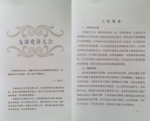 各支部書記要高度重視,不得懈怠。要按照《黨支部工作手冊》的要求認真、規(guī)范、詳細填寫記錄好“三會一課”、“黨員活動日”為民服務活動等相關工作內容,具體的由集團黨委秘書李文成同志為大家輔導講解。