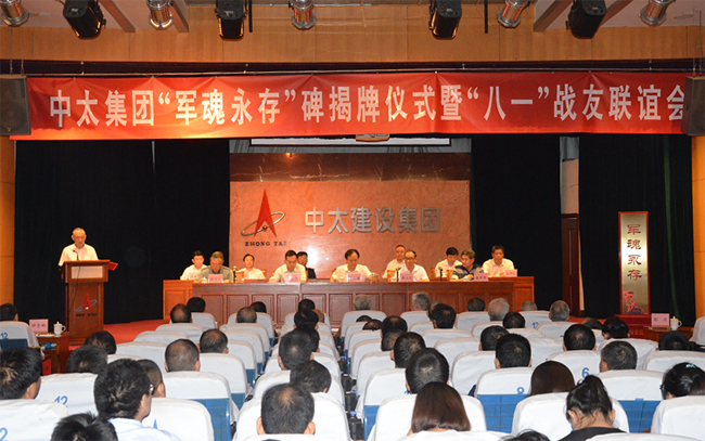 2018年7月26日上午,久違而清脆的集合號在中太大廈二樓報告廳久久回蕩,拉開了中太集團(tuán)“軍魂永存”碑揭牌儀式暨慶“八一”戰(zhàn)友聯(lián)誼會的序幕。中太集團(tuán)在廊各單位部分員工、機(jī)關(guān)各部門的全體員工和軍轉(zhuǎn)工在崗與退休戰(zhàn)友代表共180多人,著裝整齊,嚴(yán)陣以待,期待這一莊嚴(yán)時刻的到來。
