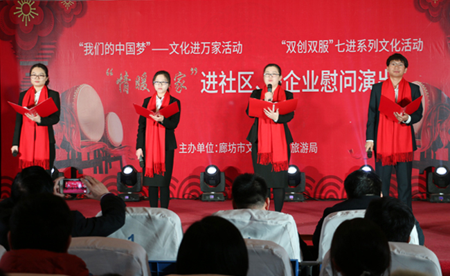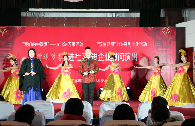 2019年2月19日上午,廊坊市伴著瑞雪迎春的兆頭和上元節(jié)張燈結(jié)彩的情景。中太大廈二樓多功能廳燈光璀璨,歡聲笑語,廊坊市文化廣電和旅游局組織的“我們的中國(guó)夢(mèng)”文化進(jìn)萬家系列活動(dòng)在此舉辦,這也是這支文藝小分隊(duì)進(jìn)企業(yè)、進(jìn)社區(qū)開展“情暖萬家”慰問演出的第十場(chǎng)演出。市文廣旅局副局長(zhǎng)李永生、中太投資控股集團(tuán)監(jiān)事會(huì)主席吉士俊出席活動(dòng)并分別致辭,中太系統(tǒng)在廊各板塊的部分員工觀看了慰問演出。