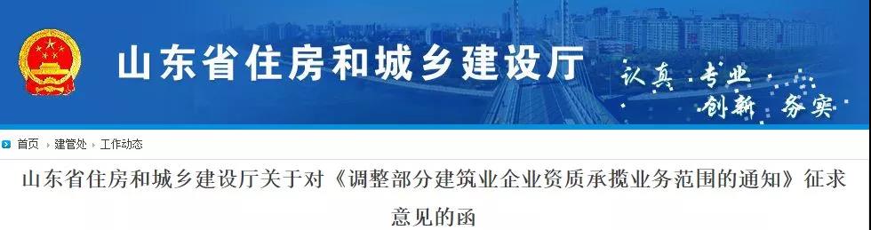 為認(rèn)真貫徹省政府辦公廳《關(guān)于進(jìn)一步促進(jìn)建筑業(yè)改革發(fā)展的十六條意見》(魯政辦字﹝2019﹞53號),切實把有關(guān)政策規(guī)定落實落地,推動建筑業(yè)企業(yè)做大做強(qiáng),現(xiàn)就調(diào)整部分建筑業(yè)企業(yè)資質(zhì)承攬業(yè)務(wù)范圍作如下通知: