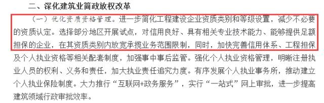 (一)具有施工總承包資質(zhì)的企業(yè),可以對總承包范圍內(nèi)不高于總承包資質(zhì)等級的專業(yè)承包工程自行施工,不再需要具備相應(yīng)的專業(yè)承包工程資質(zhì),暫估價部分必須招標(biāo)的工程除外。