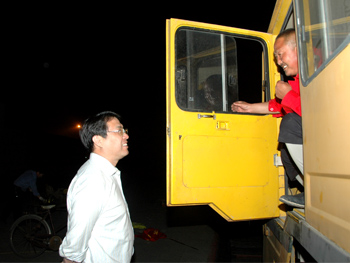 5月16日深夜,省建設(shè)廳副巡視員梁軍來(lái)到石家莊鐵路東貨場(chǎng),慰問(wèn)即將奔赴四川地震災(zāi)區(qū)的河北建設(shè)搶險(xiǎn)隊(duì)押車隊(duì)員。