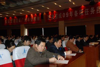 中太大廈二樓報告廳,鮮花吐艷,綠葉蔥蔥。“全面貫徹落實廣州年會精神,堅決完成09年任務(wù)目標(biāo)”的大幅標(biāo)語格外醒目。