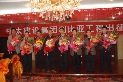 儀式上,張總對五公司成功進(jìn)軍利比亞建筑市場表示祝賀,他們的一舉一動、一言一行,不僅代表著中太,代表著河北和廊坊,更代表著中國企業(yè)的形象。希望他們在海外施工中充分展示中太人的精神風(fēng)貌,積累經(jīng)驗,打造精品工程,為集團公司未來拓展海外市場打下良好的基礎(chǔ),集團李主席和全體員工期待著他們勝利凱旋。