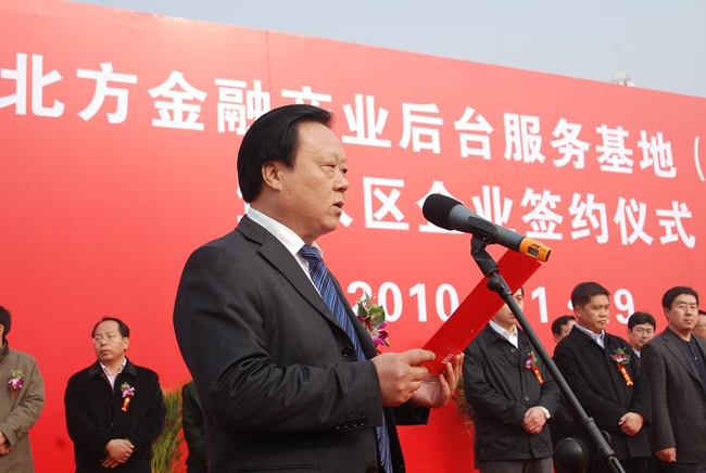 11月19日,經(jīng)河北省人民政府批準(zhǔn),河北省“中國(guó)北方金融產(chǎn)業(yè)后臺(tái)服務(wù)基地(A區(qū))”在中太現(xiàn)代服務(wù)業(yè)基地正式掛牌。省長(zhǎng)助理、省金融辦主任江波、廊坊市市委書(shū)記趙世洪出席揭牌及入?yún)^(qū)項(xiàng)目簽約儀式并為基地揭牌。市長(zhǎng)王愛(ài)民講話。市政府常務(wù)副市長(zhǎng)吳立方、市委常委、組織部長(zhǎng)范永錄等省市縣相關(guān)部門領(lǐng)導(dǎo)出席儀式。揭牌儀式由永清縣委書(shū)記布澤文主持。