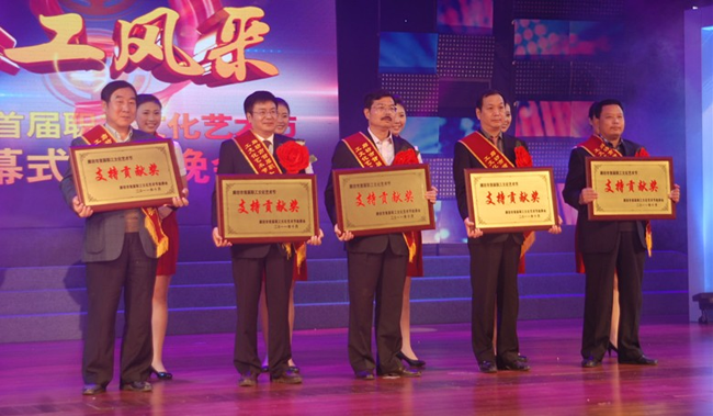 10月26日晚,廊坊市總工會在廊坊管道局影劇院隆重舉辦“職工風采”廊坊市首屆職工文化藝術節(jié)閉幕式頒獎晚會。市委副書記吳曉琳等市領導到場觀看演出,并為獲獎人員頒獎。中太建設集團等五家單位榮獲藝術節(jié)“支持貢獻獎”。受集團董事局主席、黨委書記李文健委托,工會主席、黨委副書記鐘崇鶴(中)代表集團上臺領獎。從5月到10月首屆職工文化藝術節(jié)期間,市總工會會同相關部門共組織了十大系列100項活動,其中組織各項比賽500余場次,2萬余名職工參加,取得了豐碩成果。