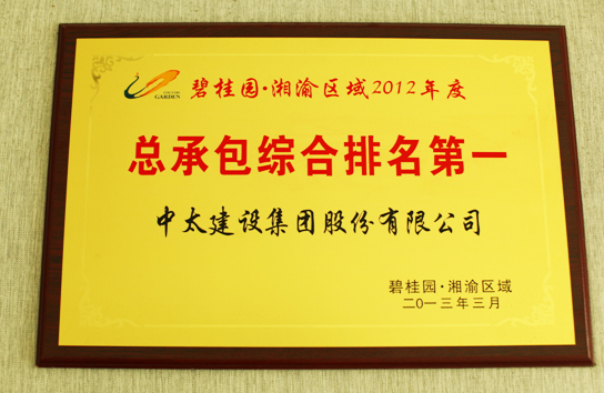 | 集團(tuán)公司獲“碧桂園•湘渝區(qū)域2012年度總承包綜合排名第一” |