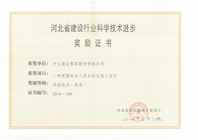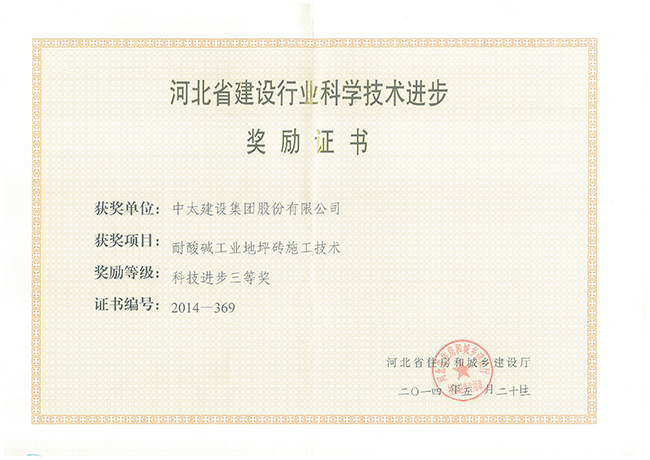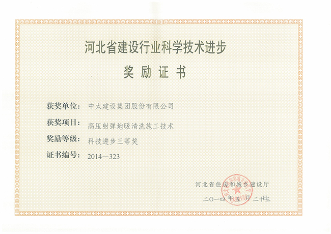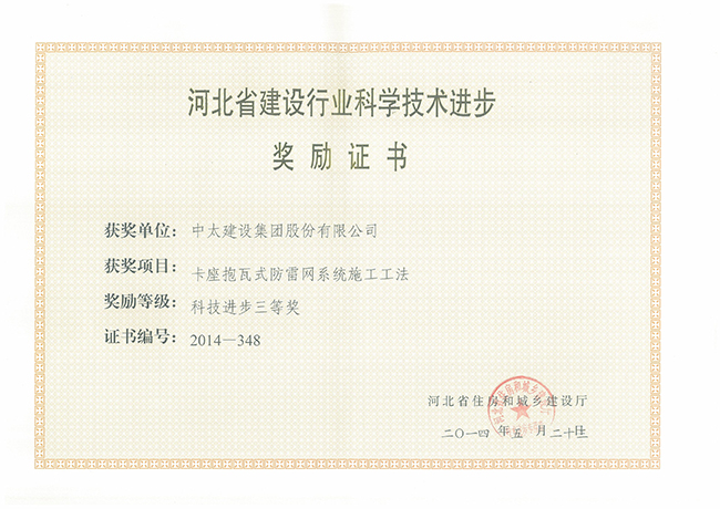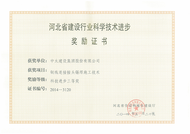 2014年河北省建設(shè)行業(yè)科學(xué)技術(shù)進(jìn)步獎(jiǎng)勵(lì)證書匯總