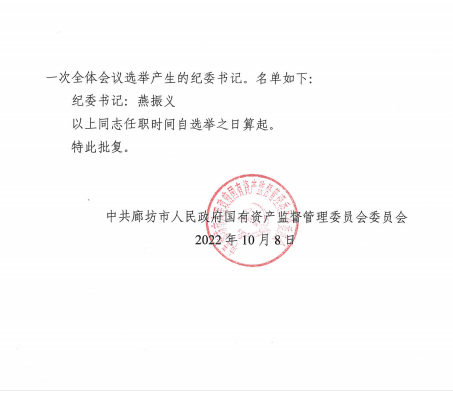 現(xiàn)將《中共廊坊市國有資產(chǎn)監(jiān)督管理委員會委員會關(guān)于同意中共中太建設(shè)集團股份有限公司委員會換屆選舉結(jié)果的批復》轉(zhuǎn)發(fā)給你們,請及時傳達至全體黨員。