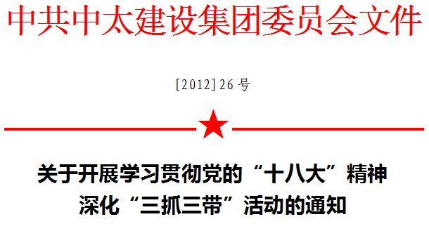 以科學發(fā)展觀為指導,以學習貫徹落實黨的“十八大”精神、爭創(chuàng)新業(yè)績?yōu)橹骶,圍繞“抓創(chuàng)新、促科學發(fā)展,抓項目、促員工增收,抓落實、促作風轉變”的主題,在集團公司各級黨組織中深入開展“三抓三帶”活動,團結帶領廣大黨員圍繞中心工作,履行崗位職責,在推動集團科學發(fā)展、創(chuàng)新發(fā)展、和諧發(fā)展中當先鋒、做表率,充分發(fā)揮好黨組織凝聚力和黨員模范帶頭作用,共同創(chuàng)造中太更加幸福美好的未來。